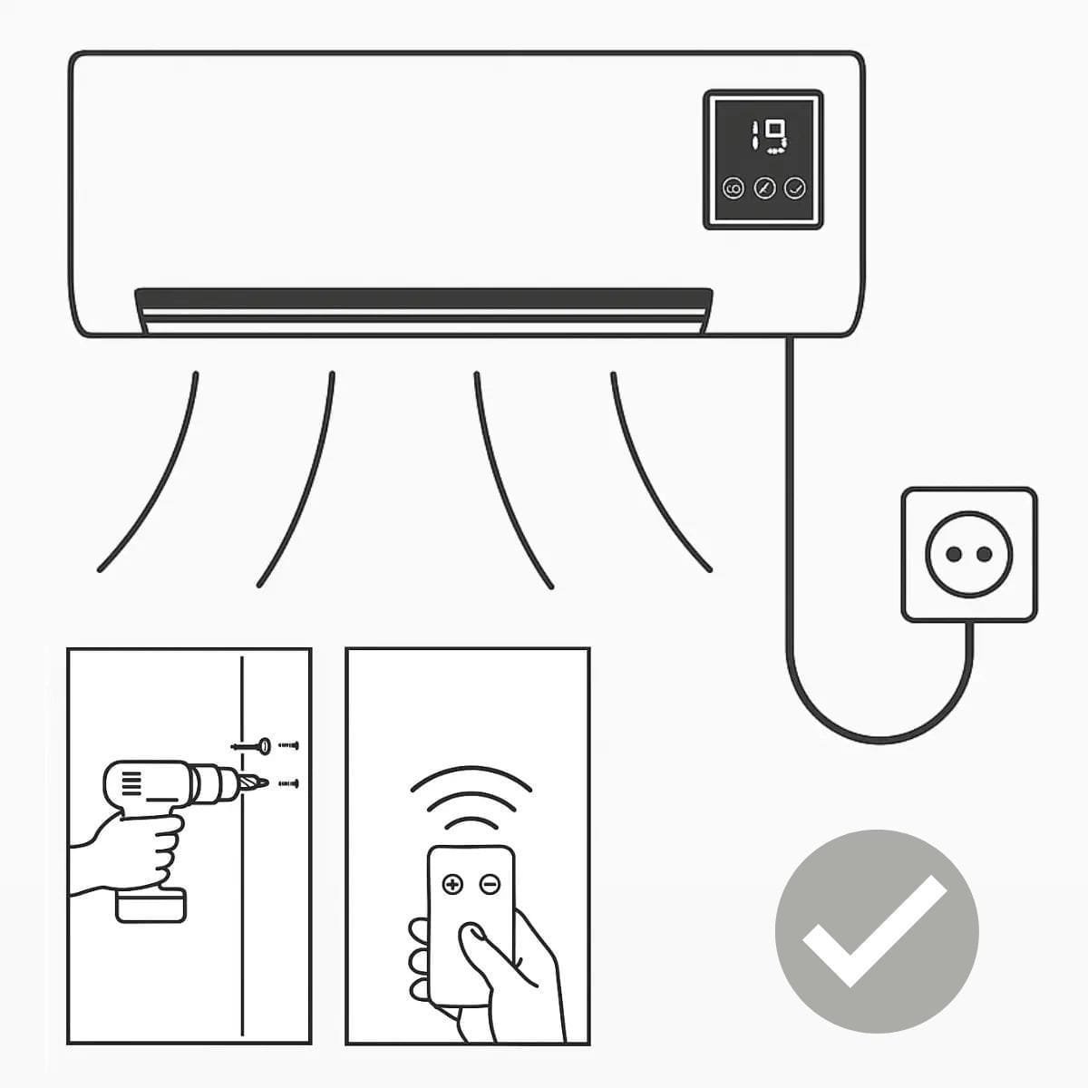 Namestitev je zelo preprosta: klimatsko napravo preprosto pritrdite na steno z vključenimi vijaki in jo priključite v običajno vtičnico.